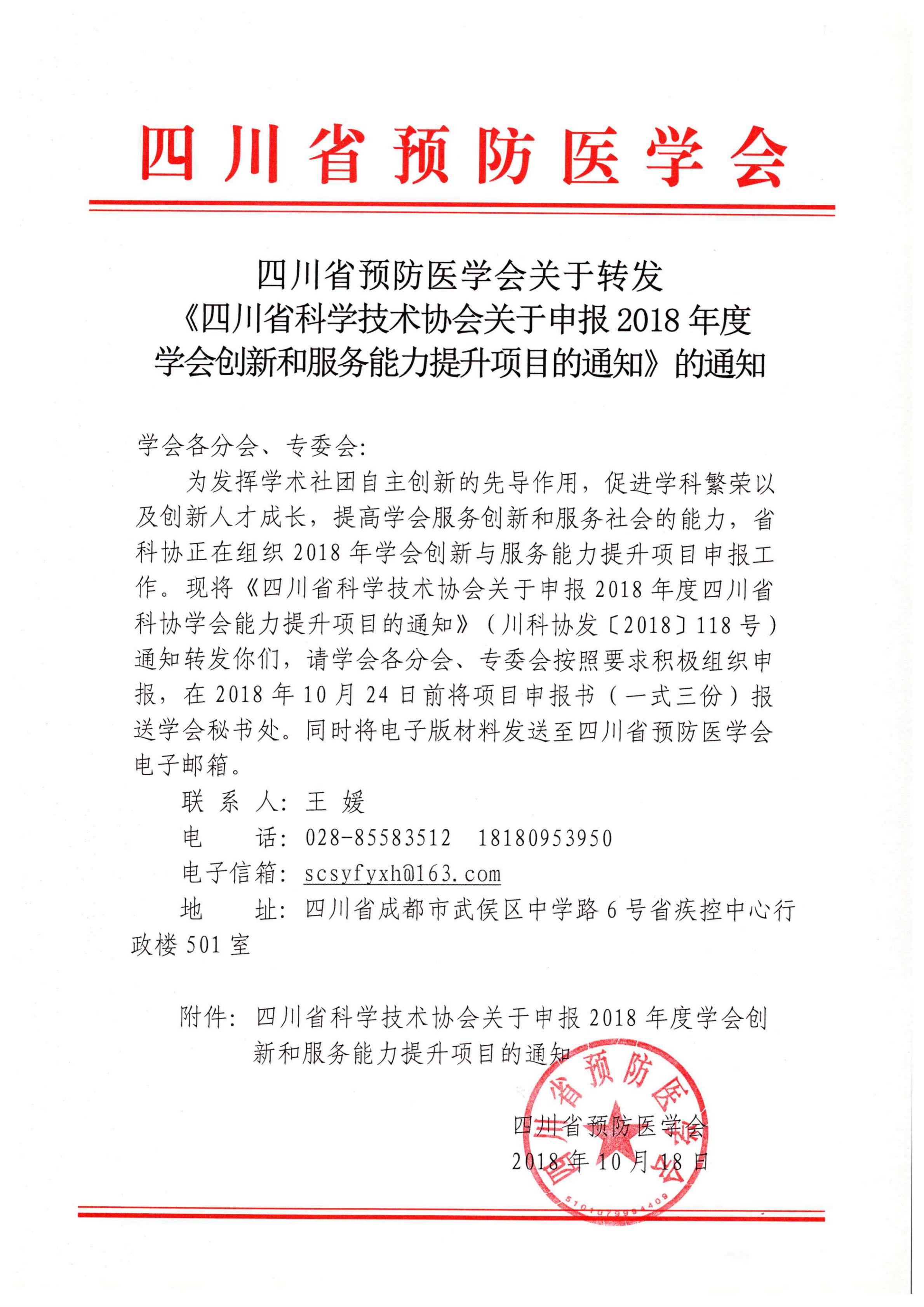 关于转发《四川省科学技术协会关于申报2018年度学会创新和服务能力提升项目的通知》的通知.pdf